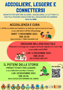 Il Comune di San Zeno di Montagna, insieme alle Amministrazioni dei Comuni limitrofi, organizza nel territorio degli incontri informativi per i genitori con figli da 0 a 6 anni sui temi dell’accoglienza, la lettura e il digitale.