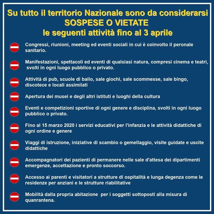 DPCM 11 marzo 2020 TESTO INTEGRALE – LIMITAZIONI FINO 25.03.2020