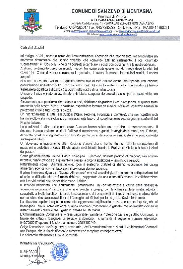 E’ possibile scaricare la lettera del Sindaco alla cittadinanza QUI’