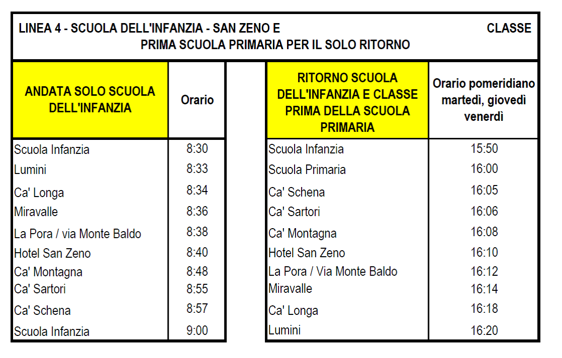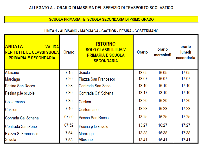 Di seguito sono disponibili gli orari relativi al trasporto scolastico per l’anno formativo 2019/2020: