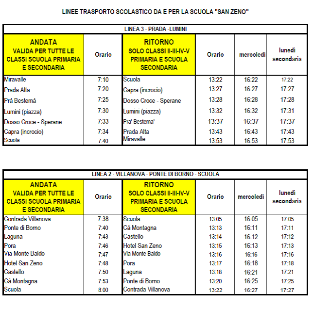 ORARI TRASPORTO SCOLASTICO
